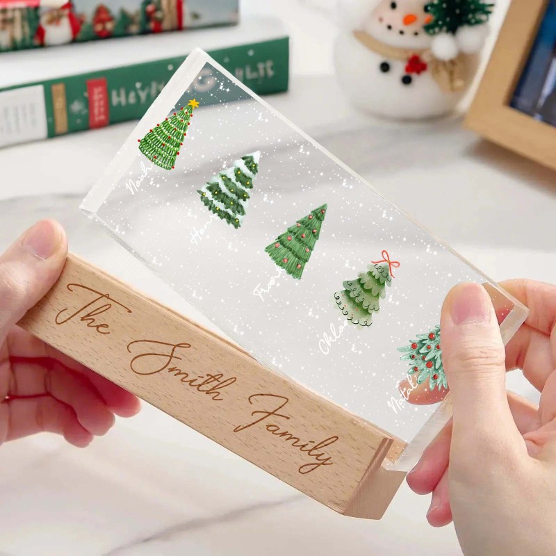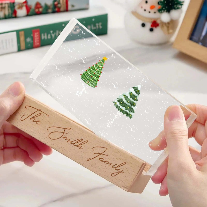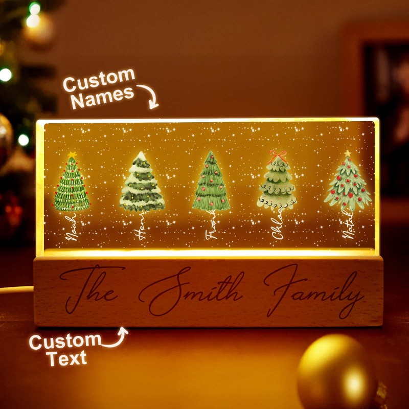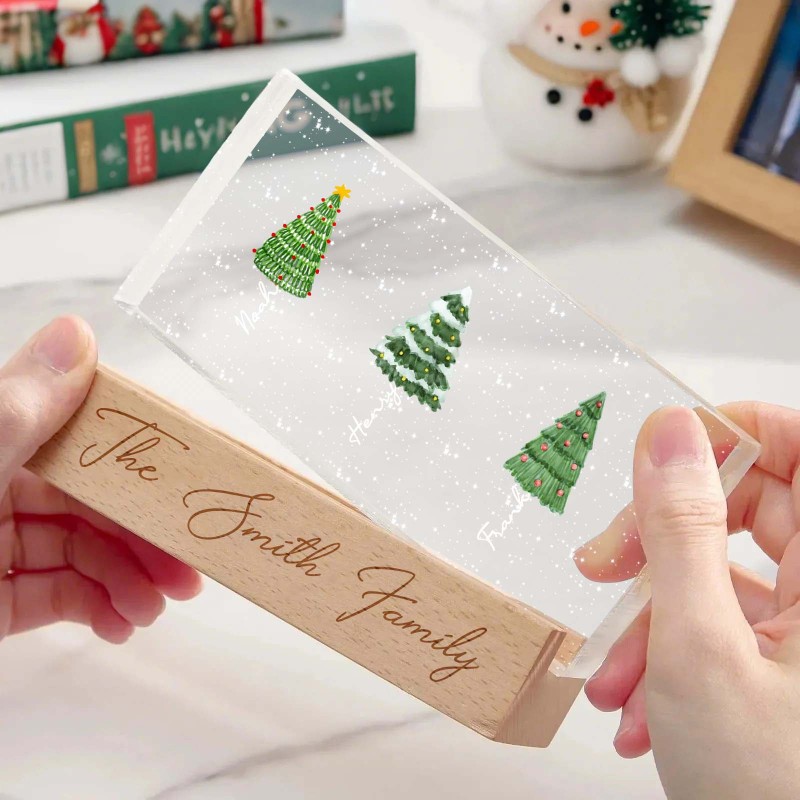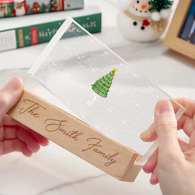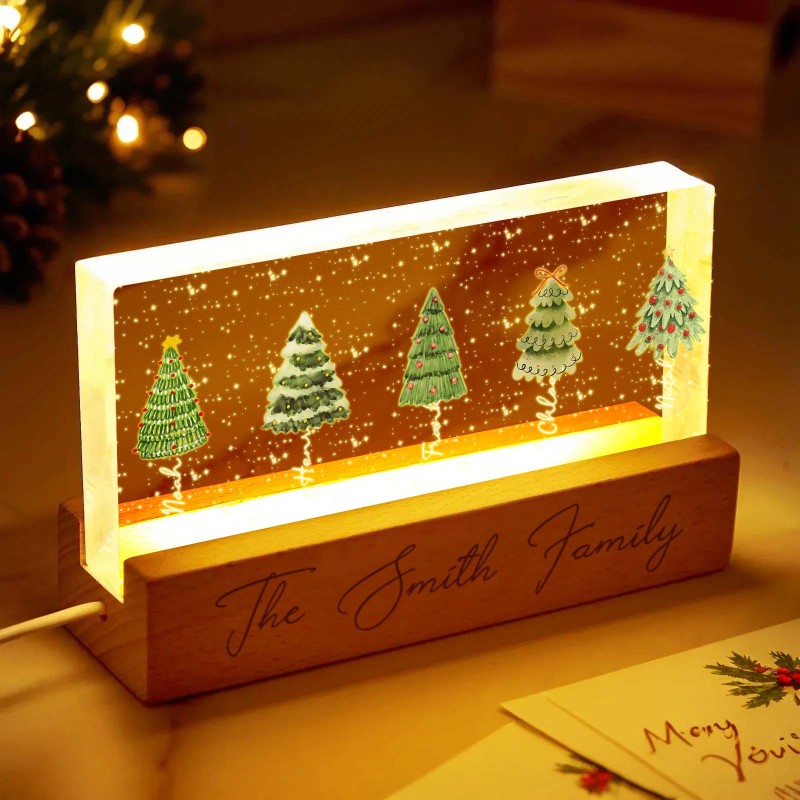 Veilleuse Led Personnalisée En Bloc Acrylique Avec Nom De Famille Pour Sapin De Noël