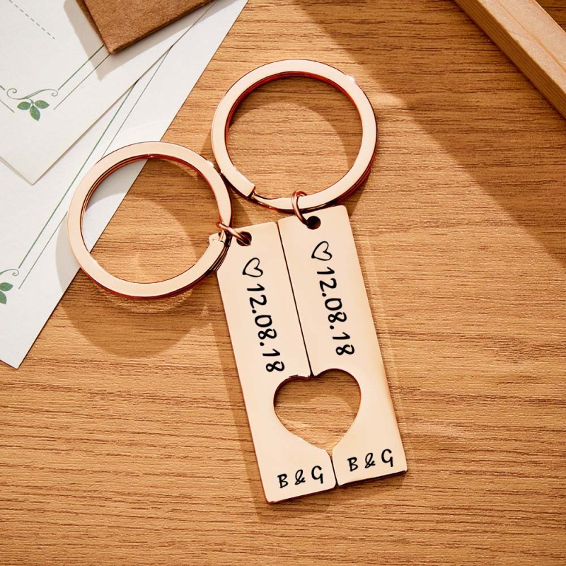 Couple Porte-clés Ensemble Coeur Personnalisé Porte-clés Personnalisé 2 Pièces Correspondant Porte-clés Cadeau Pour Lui