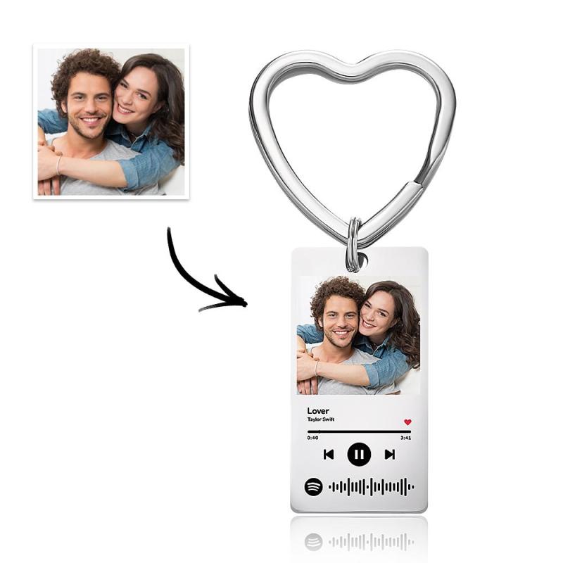 Porte-clés Spotify Personnalisé Porte-clés Photo Personnalisé Bague Coeur Cadeaux Personnalisés