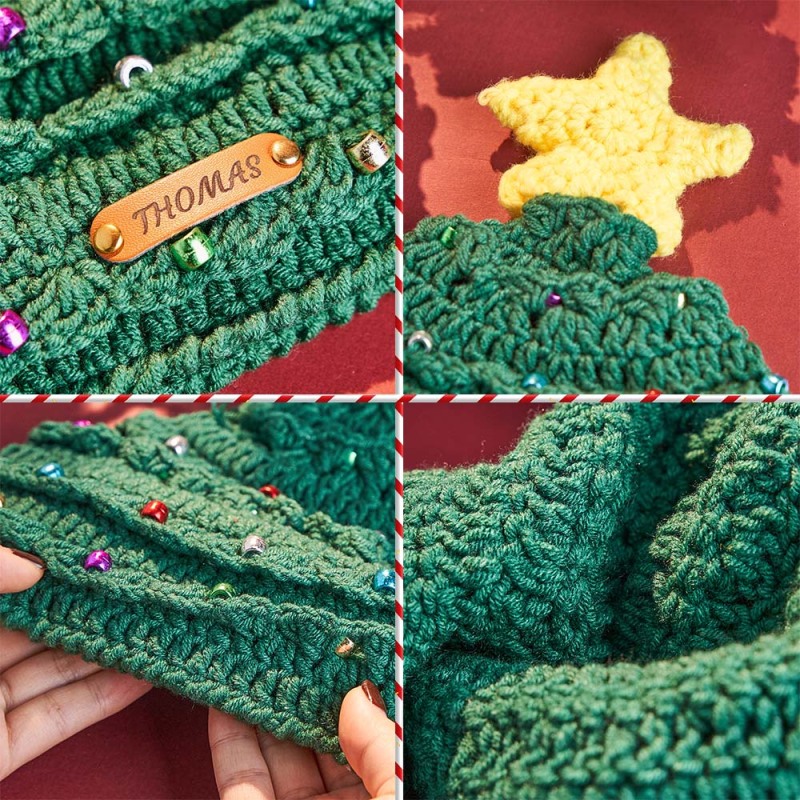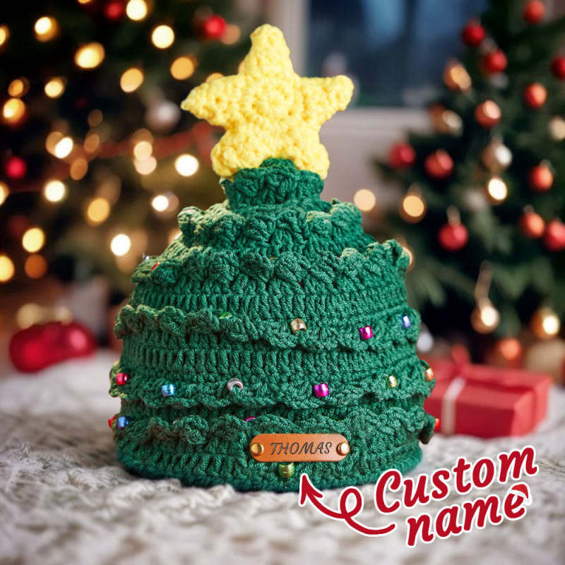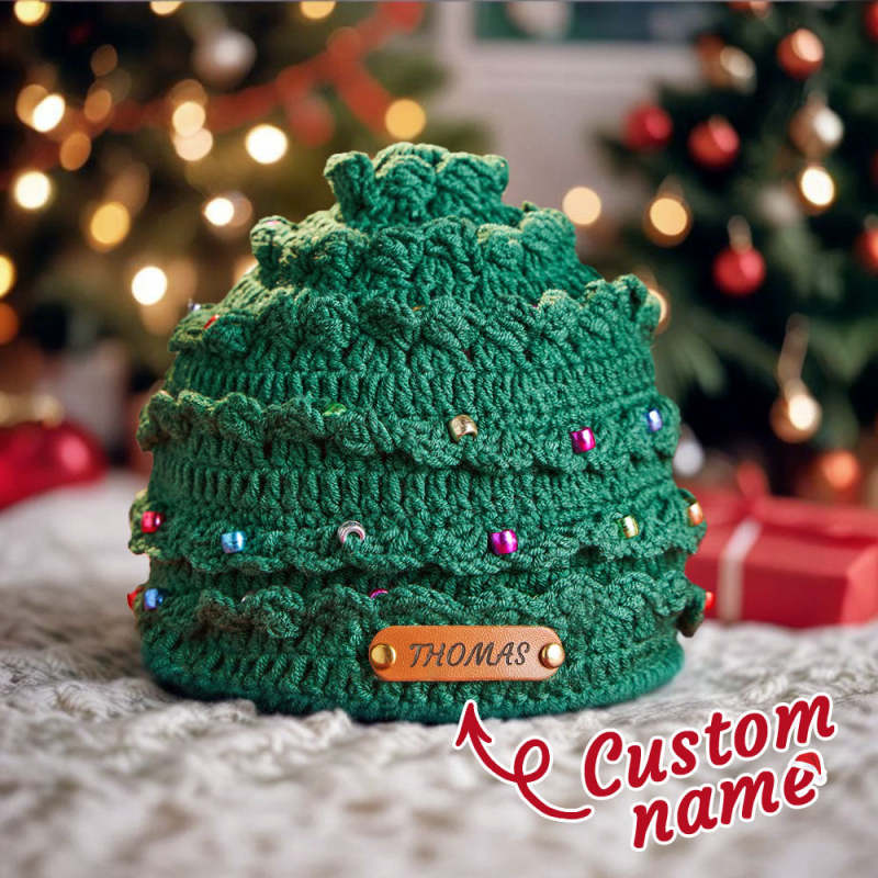 Bonnet De Noël Personnalisé Au Crochet Avec Écusson En Cuir Et Sapin De Noël - Cadeau De Noël Pour Votre Amoureux/amoureuse