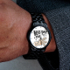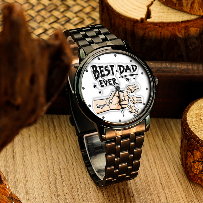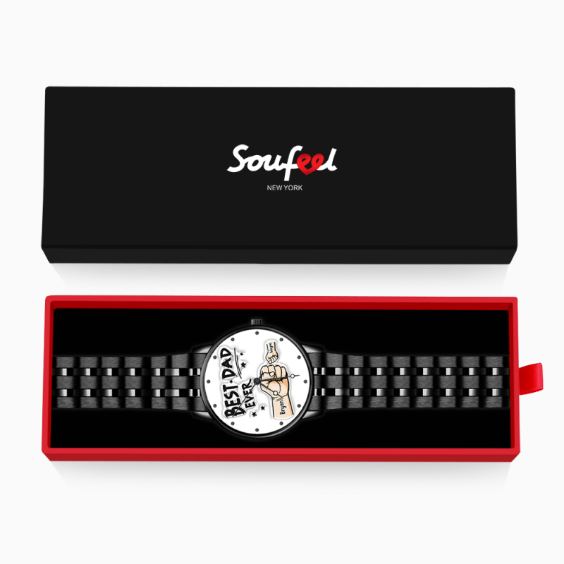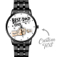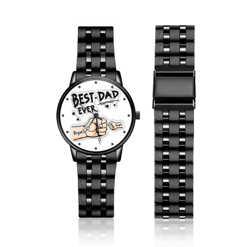 Montre Homme En Alliage Noir Gravée Personnalisée, Bracelet Avec Aiguilles, Cadeau Idéal Pour La Fête Des Pères.