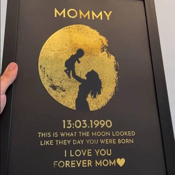 Cadre En Bois Personnalisé Avec Impression À La Feuille D'or Sur Les Phases De La Lune Et Silhouette - Cadeau Idéal Pour La Fête Des Mères