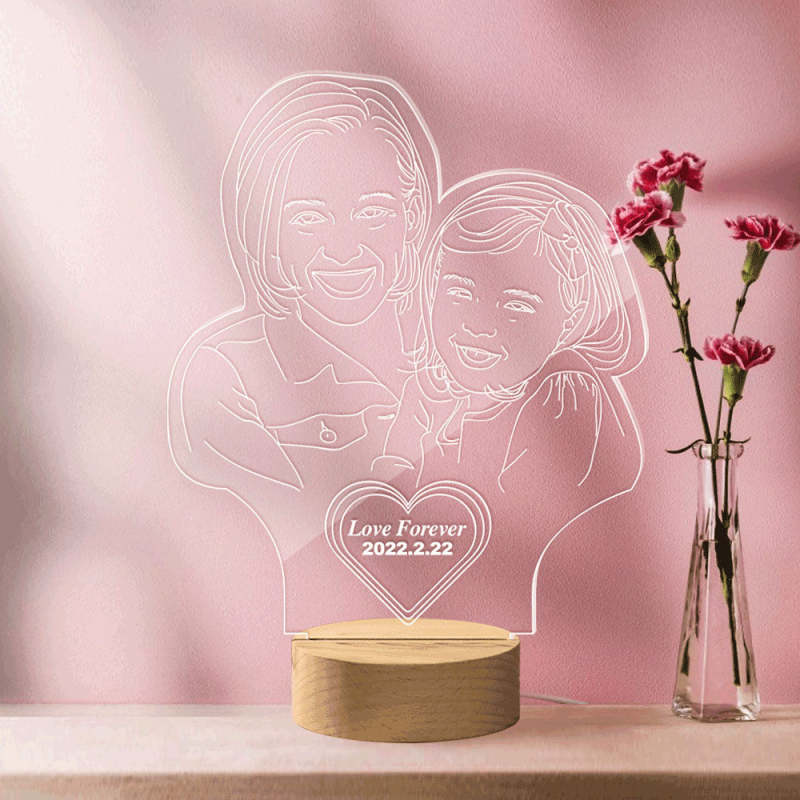Lampe Photo 3D Gravée En Forme De Coeur Personnalisée Led Cadeau Veilleuse Personnalisé Pour Maman