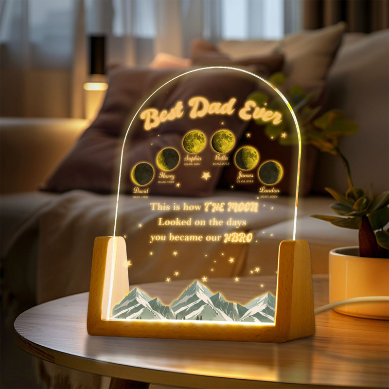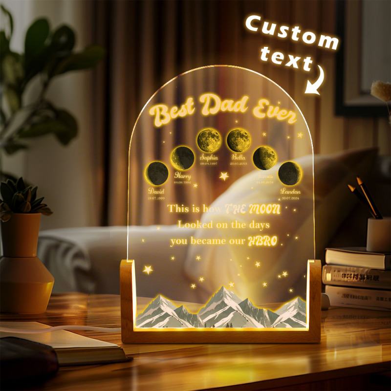 Veilleuse Led Personnalisée Avec Les Phases De La Lune Et Les Noms Des Enfants, Cadeau Pour La Fête Des Pères, Cadeau Pour Papa, Veilleuse Avec Les Phases De La Lune