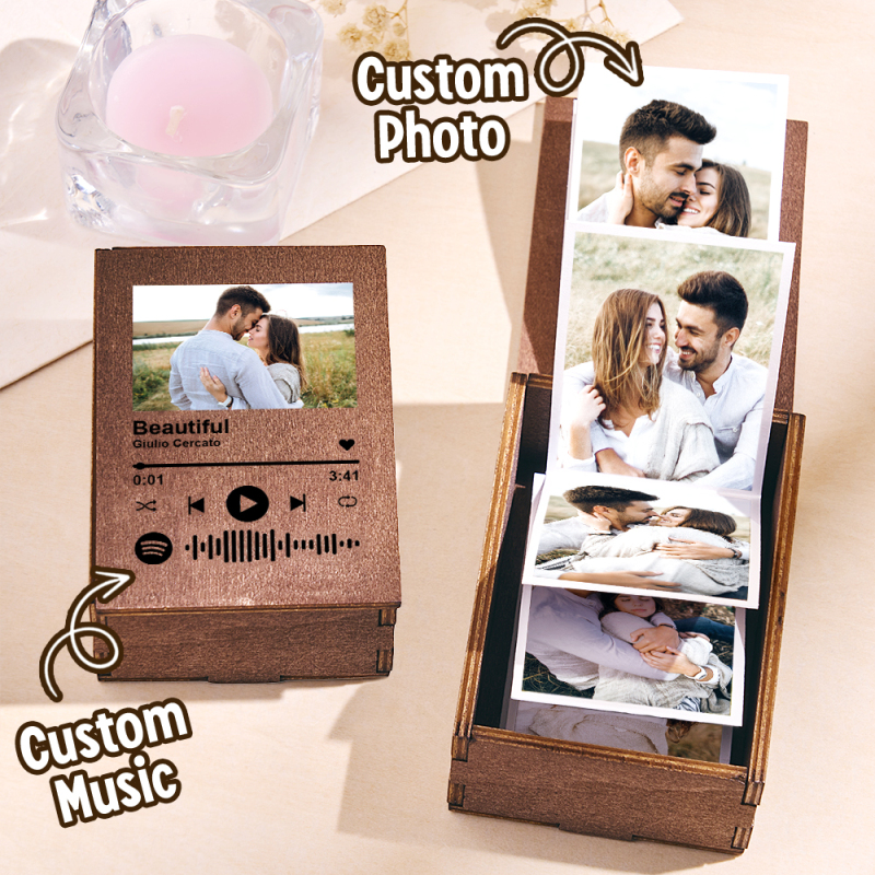 Coffret Photo En Bois Personnalisé Spotify « souvenirs D'amour », Album Cadeau D'anniversaire De Mariage Pour Couple