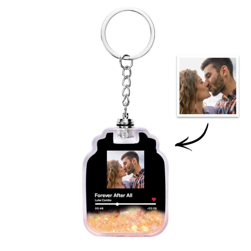 Porte-clés En Forme De Bouteille De Dérive De Sables Mouvants Illuminé Par Code Spotify Scannable Par Photo Personnalisée