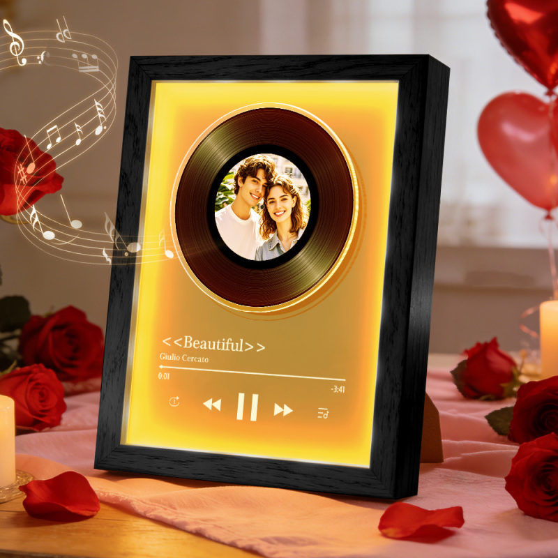 Cadre Photo Rotatif En Vinyle Personnalisé Avec Musique - Cadeau De Saint-valentin - Lecteur De Musique Personnalisé