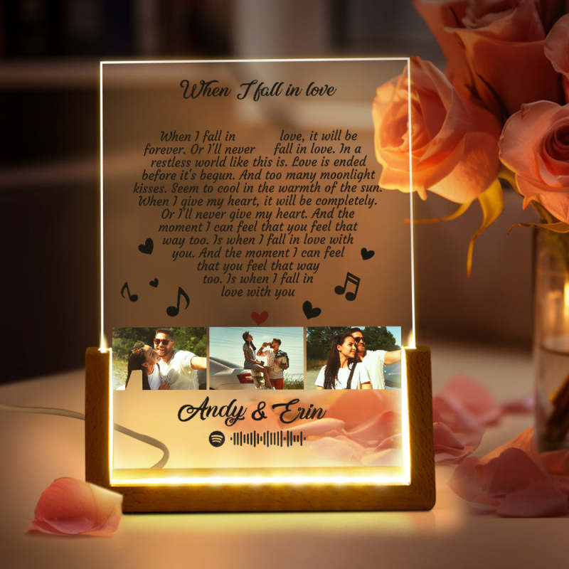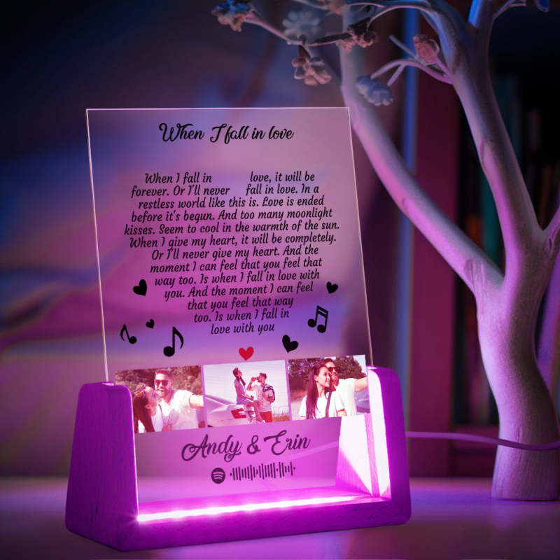 Veilleuse Spotify Personnalisée 7 Couleurs, Veilleuse Photo En Acrylique Avec Paroles Et Texte