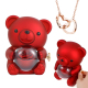 Collier Cœur Gravé Avec Véritable Rose, Coffret Cadeau Ours En Rose, Coffret Cadeau Pour Bijoux