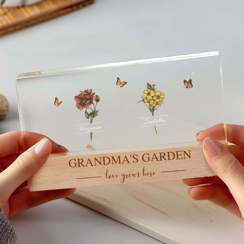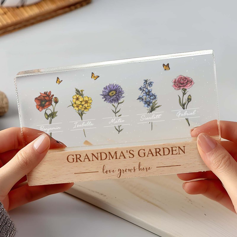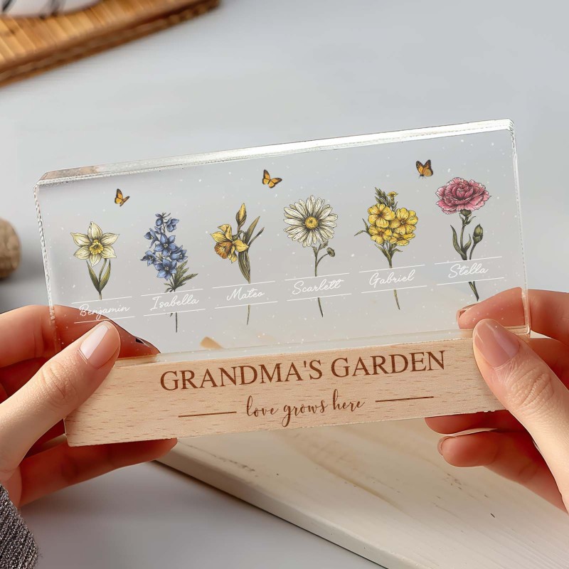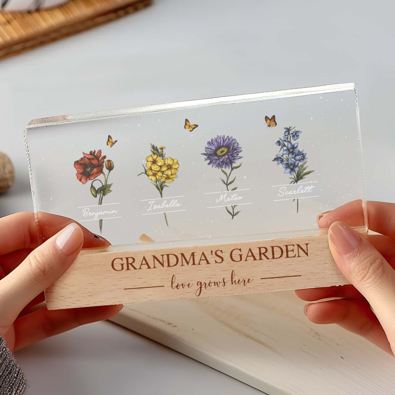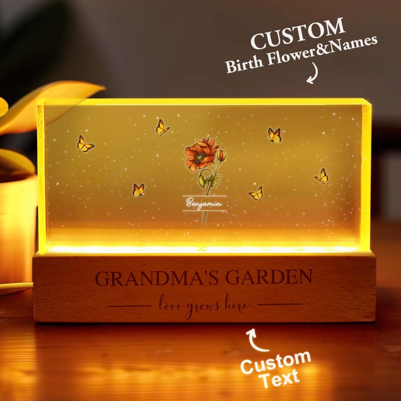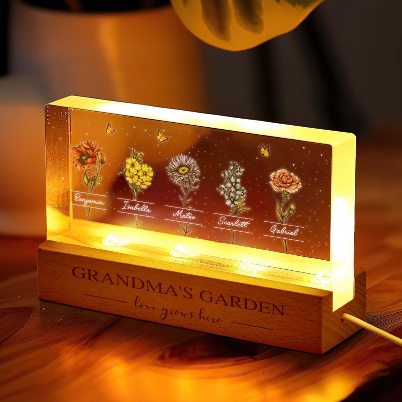 Veilleuse Led Personnalisée « Jardin De Grand-mère Avec Fleurs Du Mois De Naissance De Ses Petits-enfants », Cadeau Touchant Pour Grand-mère Et Maman