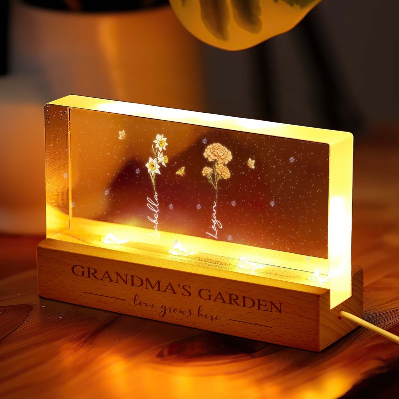 Veilleuse Led Personnalisée En Acrylique « jardin De Grand-mère » Avec Fleurs Du Mois De Naissance : Un Cadeau Touchant Pour L’anniversaire De Grand-mère, La Fête Des Mères Ou Simplement Pour Lui Faire Plaisir.