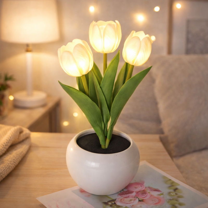 Veilleuse Led En Forme De Tulipe, Intensité Réglable, À Brancher, Romantique, Avec Fleurs Artificielles, Cadeau Pour La Fête Des Mères.