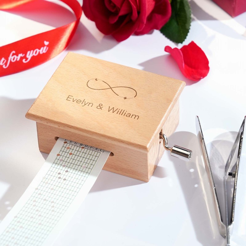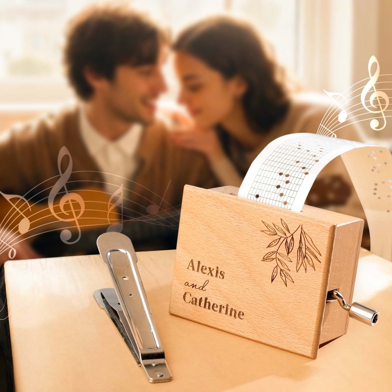 Boîte À Musique À Manivelle Personnalisée Avec Bandes De Papier Et Gravure Personnalisée