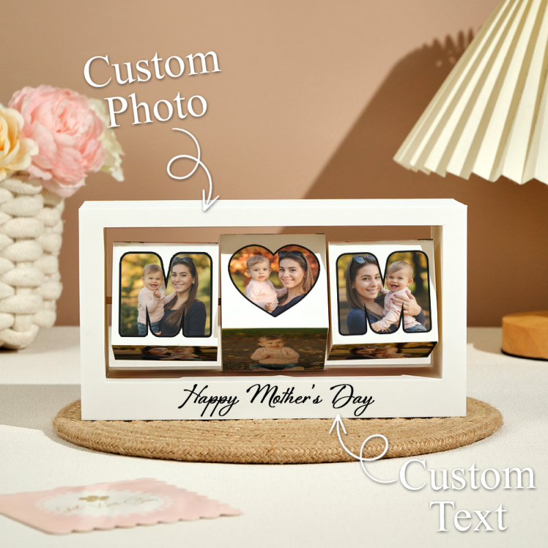 Cadeau Pour La Fête Des Mères : Cadre Photo Pivotant Personnalisé Avec Support Cube Photo Rotatif Pour Maman