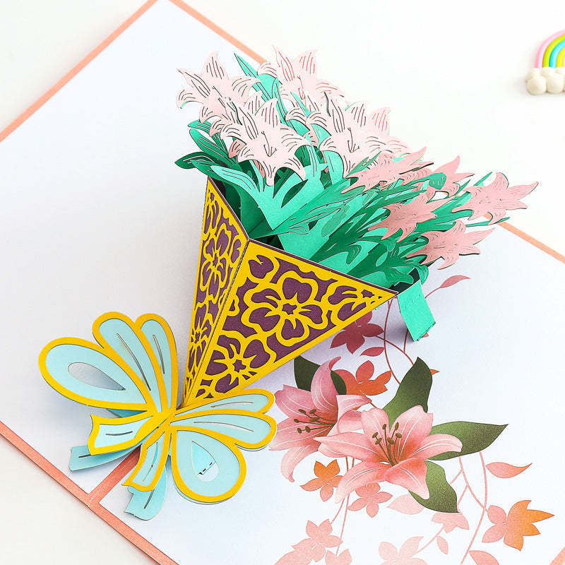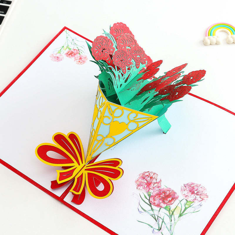 Carte De Vœux Créative Pour La Fête Des Mères, Bouquet Pliable, Carte De Vœux Tridimensionnelle Faite Main En 3d