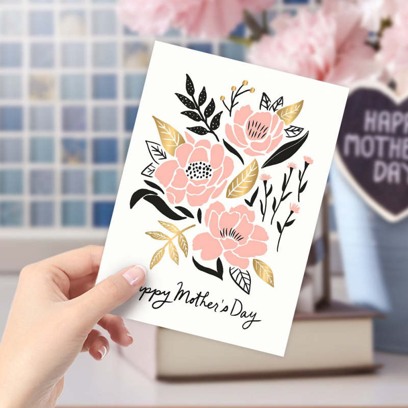 Carte De Vœux Pour La Fête Des Mères, Joli Cadeau Fleuri Pour Maman