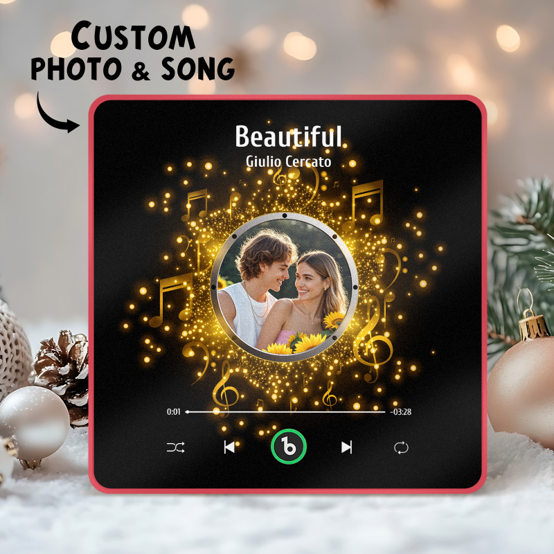 Donnez vie à votre musique préférée avec notre Aimant de réfrigérateur personnalisé en forme d'album ! Cet aimant innovant est bien plus qu'un simple objet décoratif ; c'est un appareil fonctionnel et interactif qui vous permet d'écouter vos chansons préférées directement depuis votre réfrigérateur. Que vous souhaitiez écouter une playlist relaxante en cuisinant ou profiter de votre musique préférée en grignotant, cet aimant pour réfrigérateur vous offre toutes les possibilités.Matériau : AcryliqueDimensions : 10 cm x 10 cm x 1,2 cm Durée : 30 minutesAutonomie : 4 à 6 heures Choisissez des chansons d'amour romantiques ou vos mélodies préférées pour créer un aimant musical personnalisé pour votre réfrigérateur. À chaque utilisation, l'aimant diffusera la musique de votre amour. Si vous le souhaitez, vous pouvez même changer la musique de l'aimant pour n'importe quelle chanson de votre choix ou un enregistrement vocal personnel. Pour des instructions détaillées, veuillez contacter notre service client. Un tutoriel dédié est à votre disposition.Pratique et esthétique : Avec son design raffiné, cet aimant décorera joliment votre réfrigérateur et apportera une touche de charme à votre intérieur. Il peut aussi diffuser une musique chaleureuse de façon inattendue, emplissant chaque recoin d'amour.Sûr et respectueux de l'environnement : Fabriqué à partir de matériaux de haute qualité, sûrs et non toxiques, garantissant une utilisation durable et sans souci. Grâce à sa faible consommation d'énergie, vous n'aurez pas à vous soucier de remplacer fréquemment les piles.Ce produit nécessite 3 à 5 jours ouvrables de production.Unicité : Seul aimant de réfrigérateur musical personnalisé du marché, ce cadeau témoigne de votre amour de manière unique. Valeur : Chaque chanson personnalisée porte en elle les histoires et les émotions que vous partagez, faisant de ce cadeau un présent chaleureux et significatif.Utilité pratique : Ce n'est pas seulement un cadeau pour la Saint-Valentin, mais aussi une petite attention au quotidien, qui vous rappelle constamment l'amour et l'affection que vous vous portez.En cette fête spéciale, utilisez cet aimant musical pour réfrigérateur pour exprimer votre profond amour à votre bien-aimé(e) ! Que ce cadeau créatif et attentionné devienne la plus belle mélodie de votre histoire d'amour.