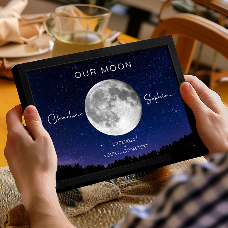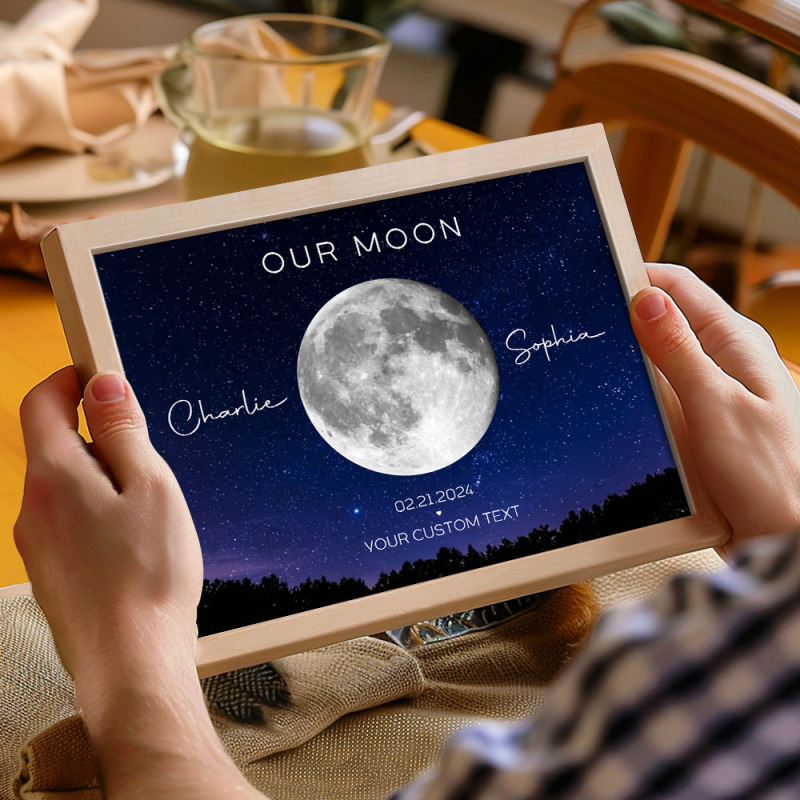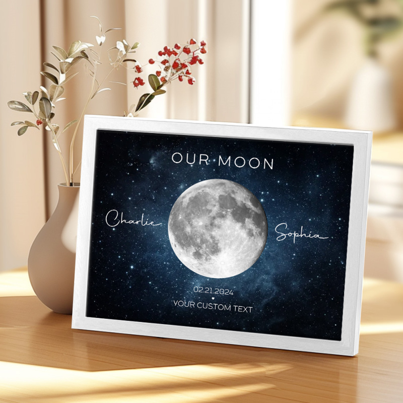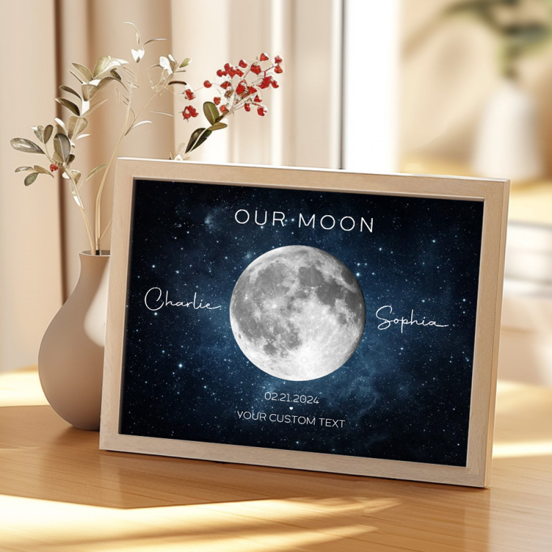 Notre Cadeau De Couple De Lune Anniversaire D’art De Phase De Lune Pour La Femme, Cadeau Pour L’anniversaire De Mariage De Mari Poster Personnalisé