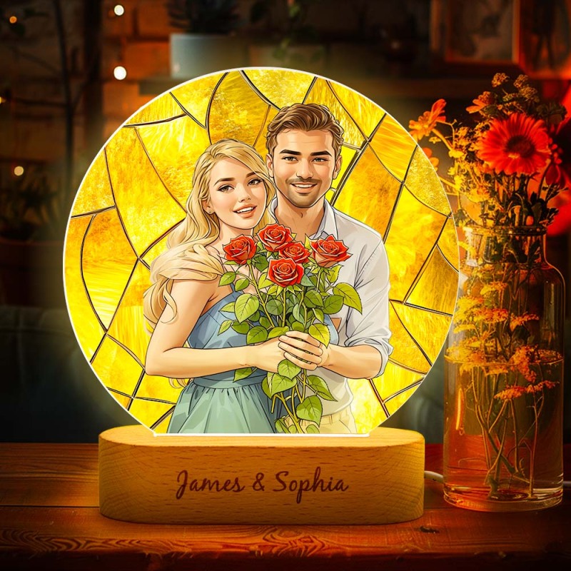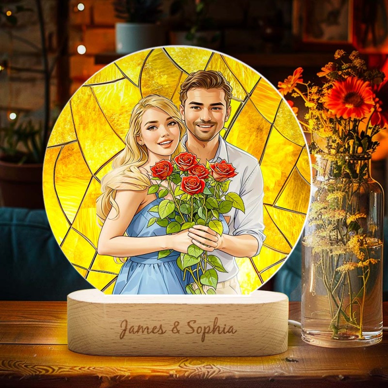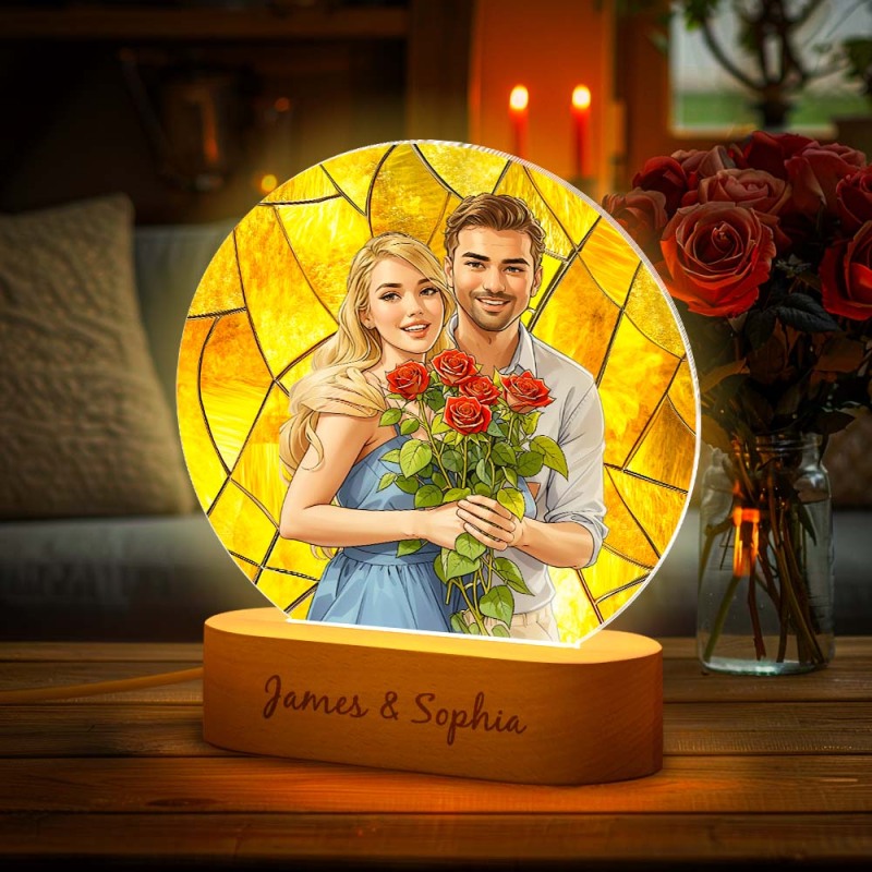 Veilleuse Personnalisée D’art Photo De Couple Avec Base En Bois, Cadeau De Lampe 3d D’anniversaire De Mariage, Cadeau De La Saint-valentin Pour Petite Amie/petit Ami