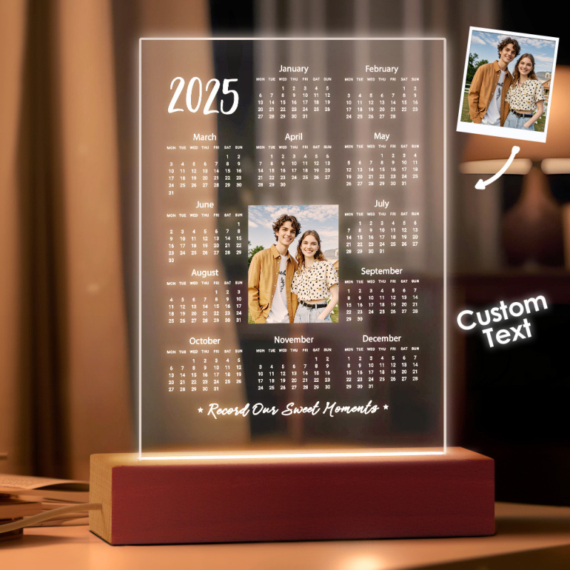 Calendrier Lumineux Led Personnalisé 2025 Avec Photo - Cadeau De Saint-valentin Pour Couple