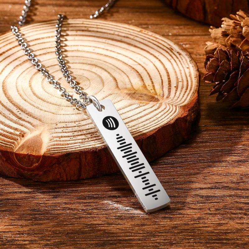 Collier De Barre Personnalisé Collier De Code Spotify-collier En Acier Inoxydable Avec Nom Personnalisé-cadeaux Pour Elle