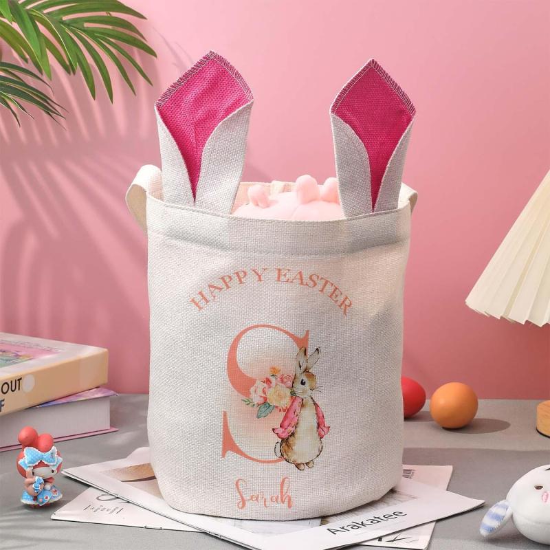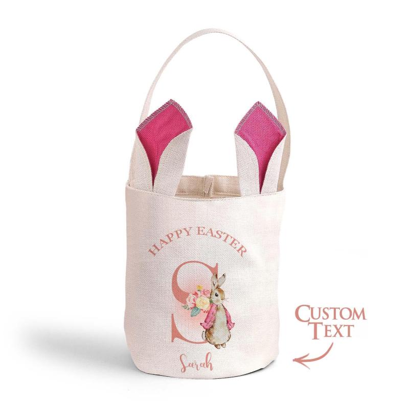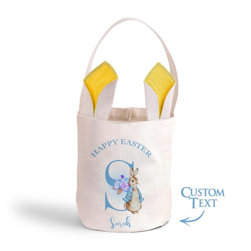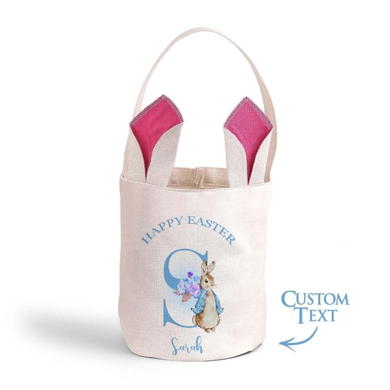Sac Seau Personnalisé Avec Oreilles De Lapin Peter Rabbit, Initiale Et Prénom, Pour Une Chasse Aux Œufs De Pâques Ou Un Anniversaire. Cadeau Idéal Pour Les Enfants.