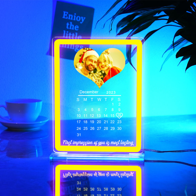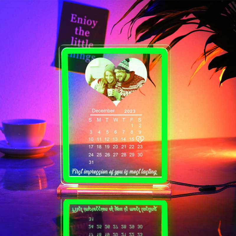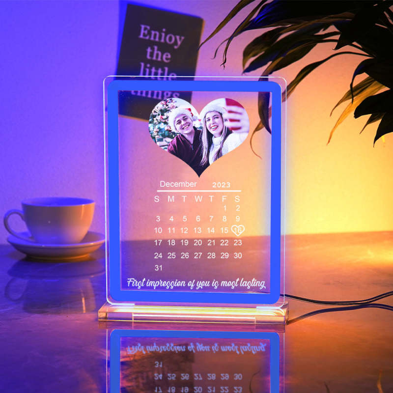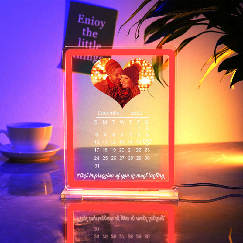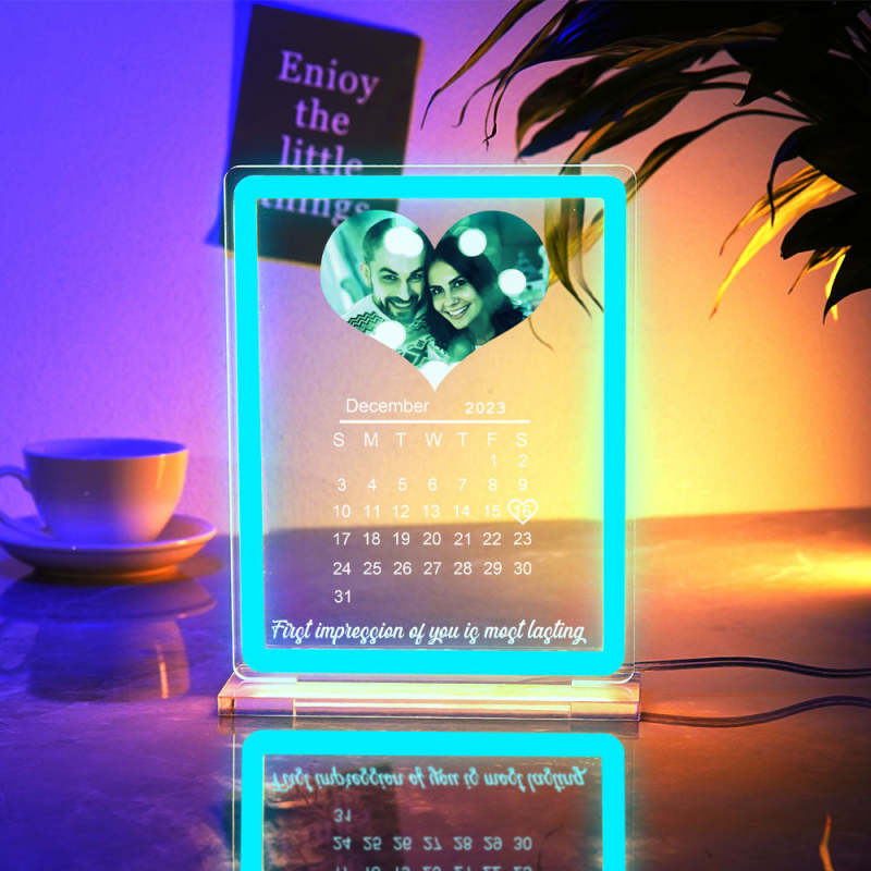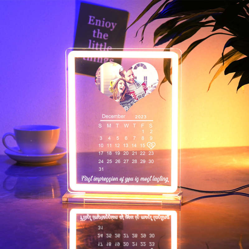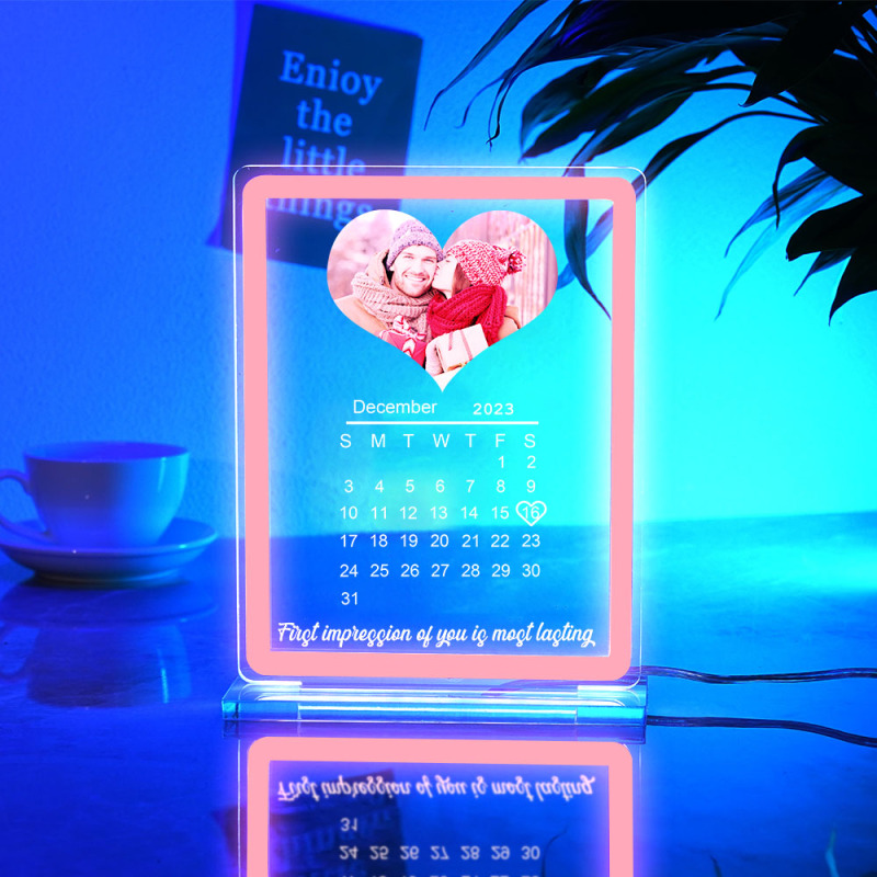 Veilleuse Personnalisée Avec Calendrier Photo En Forme De Cœur, Avec Panneau Néon, Lampe De Date Personnalisée Pour Couples