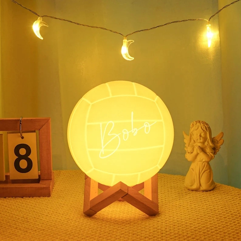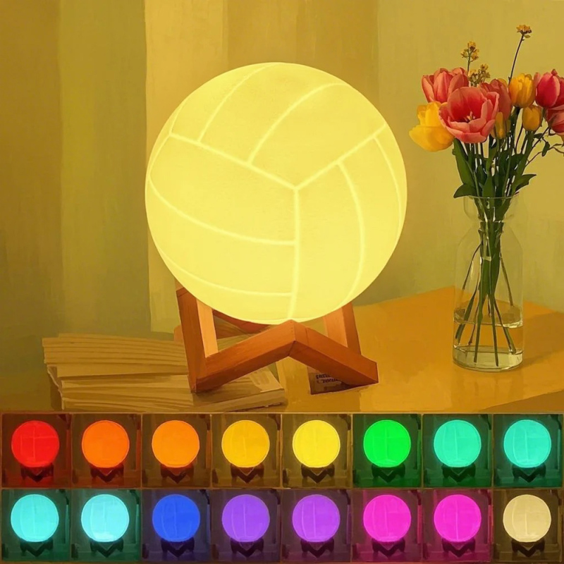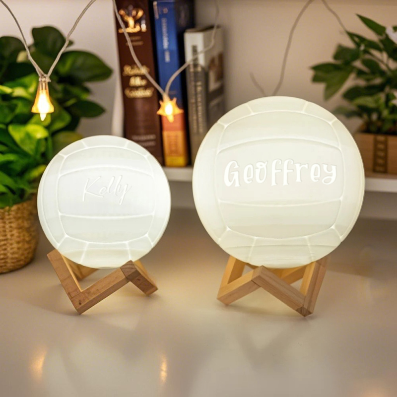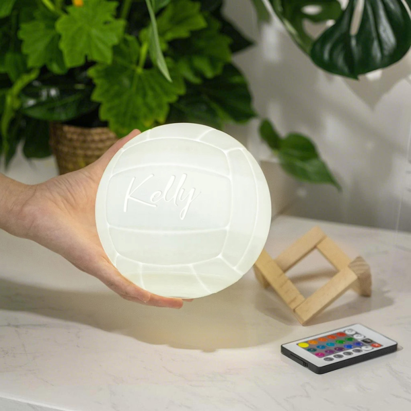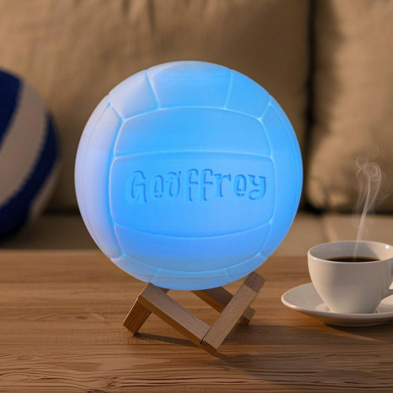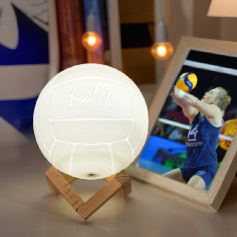 Veilleuse 3d Personnalisée Avec Nom Et Télécommande, Motif Volley-ball, Lampe De Table Avec Socle En Bois, Décoration Sportive Pour Chambre, Cadeau Pour Les Passionnés Et Joueurs De Volley-ball.