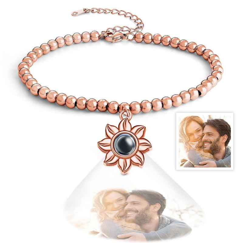 Personnalisé Photo Projection Tournesol Bracelet Exquis Memorial Bracelet Bijoux Pour Elle