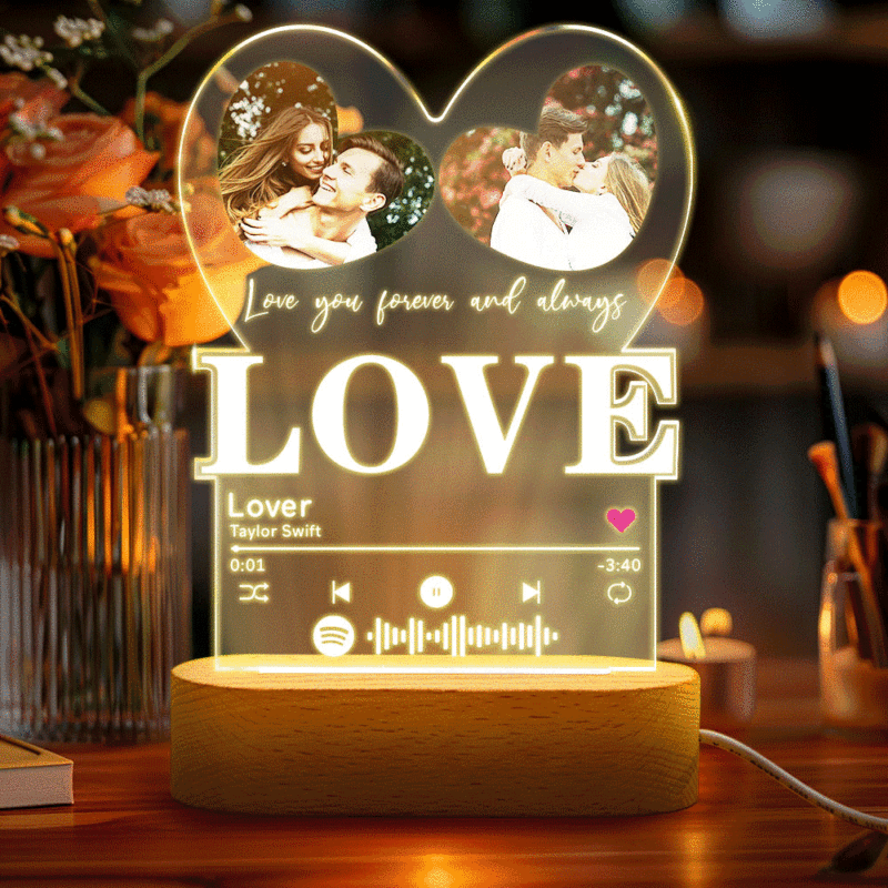 Cadeau Romantique Personnalisé De Veilleuse En Acrylique De Coeur D'amour Pour La Décoration À La Maison De Couple
