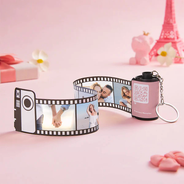 Scannable QR Code Shell Film Roll Porte-clés avec votre photo ou texte Multiphoto Cadeau personnalisé pour elle