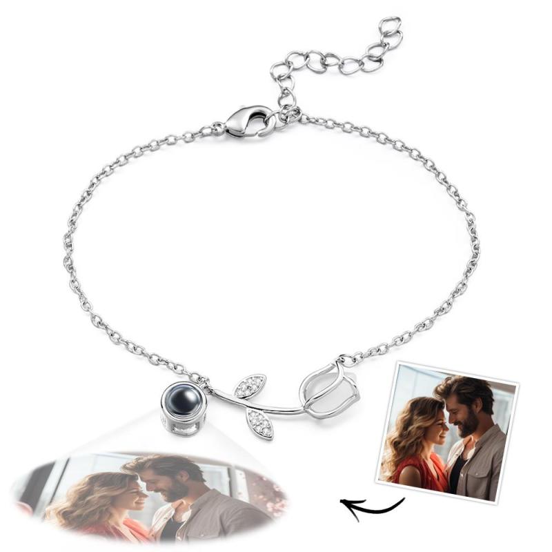 Cadeaux de la fête des mères Bracelet De Projection De Photo Tulipe, Personnalisé, Fleur, Minimaliste, Bijoux Commémoratifs Pour Animaux De Compagnie