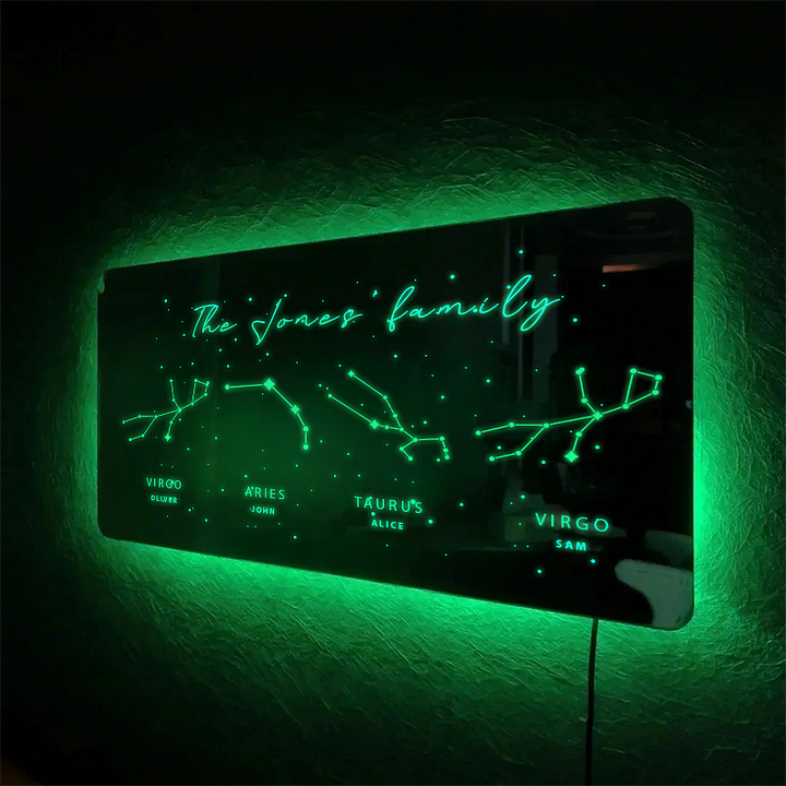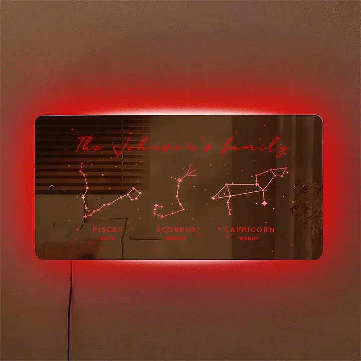 Lampe Miroir Personnalisée Avec Le Zodiaque Et Votre Nom, Veilleuse Miroir, Cadeau De Noël Pour Votre Amoureux/amoureuse
